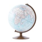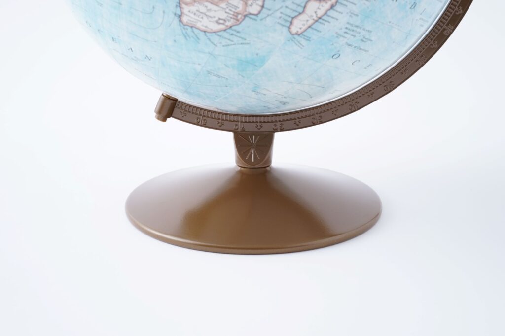 トレイル・ブレイザー 英語版 ¥19,800(税抜¥18,000) その名もトレイル・ブレイザー。トレイル・ブレイザーとは「先駆者」という意味。 他には無いアンティーク調の青い海と白地の大陸が、先駆者たちが世界中を駆け巡った大航海時代を思わせます。 地図の情報は最新版ですので、安心してお使いいただけます。 オフィスはもちろん、ご家庭の書斎やリビングにもなじむデザインになっています。 品 番30576 英語版 サイズ球径:30cm 高さ:39cm 重量:1㎏ 種 類行政型 タイプ照明なし/球の凹凸あり(山岳隆起加工) 素 材球:特殊紙 台座:金属 リングアーム:金属